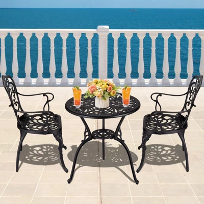 Outdoor Bistro Set, Patio Table and Chairs ¨C 3-Piece Rust-Resistant Cast Aluminum All-Weather Set with Umbrella HoleProduct Description:Elevate Your Outdoor Space