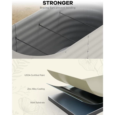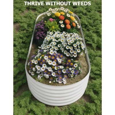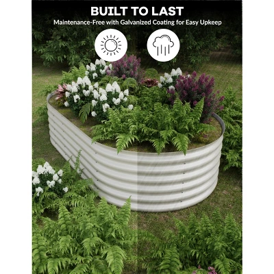 Title: Ergonomic Raised Garden Bed with Starter Kit – Stain-Resistant Oval Galvanized Steel Planter for Herbs, Veggies & Flowers1.5-Foot Ergonomic Height: Back-Strain-Free Gardening for AllThis raised garden bed is designed with accessibility in mind, featuring an optimal 1.5-foot height that eliminates the need for bending, kneeling, or hunching—common pain points of traditional in-ground gardening. Whether you’re a senior gardener, someone with mobility challenges, or simply want to avoid back fatigue during long planting sessions, this height lets you tend to plants while standing or gently leaning. It turns gardening into a therapeutic, stress-free activity, letting you focus on nurturing herbs, vegetables, or flowers without discomfort—making it ideal for gardeners of all ages and abilities.Complete Starter Kit Included: Plant Right Away, No Extra PurchasesUnlike many garden beds that require separate tool runs, this set comes with everything you need to start planting immediately: a free starter kit with assembly tools (no need to dig through your garage for a wrench) and cushioned gardening gloves (to protect hands from soil, thorns, or rough edges). The tools simplify setup—you can have the bed assembled in minutes—and the gloves add comfort during planting, weeding, or harvesting. With zero extra costs or last-minute trips to the store, you can unbox, assemble, and sow seeds the same day.Space-Efficient Oval Design: Maximizes Planting Space, Minimizes ClutterThe sleek oval shape is a game-changer for small outdoor spaces like balconies, patios, or compact yards. It fits snugly against walls, in corners, or between patio furniture without feeling bulky, while the curved design maximizes internal planting space—you’ll have more room for herbs (basil, mint), veggies (lettuce, cherry tomatoes), or flowers than a narrow rectangular bed of the same footprint. Beyond functionality, its modern, casual style enhances outdoor decor: it blends seamlessly with contemporary patio sets, bohemian balcony arrangements, or minimalist yards, adding visual charm without overwhelming the space.Galvanized Steel Build: Weather-Resistant & Low-MaintenanceCrafted from robust galvanized steel, this garden bed is built to withstand the elements and resist common gardening wear:Rust-resistant: The galvanized coating protects against rain, humidity, and soil moisture, so it won’t corrode over time (unlike uncoated metal or rotting wood).Stain-resistant: Soil, fertilizer, or plant sap wipes off easily—no permanent discoloration to mar its appearance.Extreme weather-proof: It holds up to harsh sun, heavy rain, and even light snow without warping or cracking.Best of all, it requires zero upkeep: no sanding, sealing, or replacing parts. Spend less time maintaining the bed and more time enjoying your growing plants.Versatile Planting: Grows Herbs, Veggies, Flowers & MoreThis adaptable oval planter supports a wide range of plants, making it perfect for beginners and seasoned gardeners alike:Herbs: Grow fresh basil, rosemary, or parsley right outside your kitchen for easy cooking access.Vegetables: Cultivate compact veggies like cherry tomatoes, spinach, or radishes—ideal for small-space urban gardens.Flowers: Add color with blooming annuals (petunias, marigolds) or low-maintenance perennials (succulents, lavender).Whether you want a functional herb garden, a decorative flower bed, or a mini vegetable patch, this planter adapts to your vision—no need for multiple separate containers.