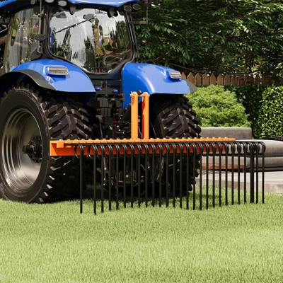 Pine Straw Rake 60 Inch: 3-Point Hitch Landscape Rake for Tractor, Cat 0 & Cat 1 CompatibleProduct OverviewEfficiently manage yard debris with the TROPOW 60-Inch Pine Straw Rake, designed for tractors with Cat 0 or Cat 1 three-point hitch systems. Constructed from powder-coated steel with 26 flexible spring tines, this rake effortlessly gathers pine needles, leaves, grass clippings, and straw while resisting rust and wear. The vibrant orange finish ensures visibility during operation, and its 60-inch working width covers large areas quickly. Ideal for homeowners, landscapers, and farmers, this attachment combines durability and functionality for seasonal clean-up tasks.Key Features & Benefits 60-Inch Working Width