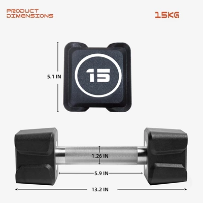 - 3. Stable Square Design with No-Roll Head: Engineered with a square dumbbell shape and anti-roll edges, these weights stay firmly in place during rest intervals. The no-roll head design enhances safety in compact workout spaces and simplifies storage organization.