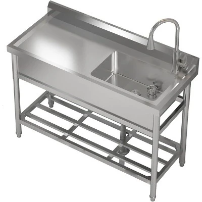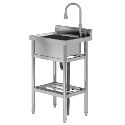 “Utility Sinks and Stainless Steel Sinks ¨C 24″x20″x42” Freestanding Commercial Sink with Pull-Out Faucet (TROPOW Brand)”Key Features:Dual Stainless Steel Construction ¨C Features 201 stainless steel body with 304 stainless steel faucet for heavy-duty use (Dimensions: 24″W x 20″D x 42″H, Color: Silver).Large Single Bowl ¨C Spacious design fits pots, pans, and tools for efficient cleaning in home/commercial spaces.Pull-Out Faucet ¨C Flexible spray head with hot/cold water pipes for precise washing and rinsing.All-Temperature Ready ¨C Includes hot and cold water supply for versatile tasks (dishes, hands, tools).Freestanding Versatility ¨C Easy to place indoors/outdoors; ideal for laundry rooms, garages, restaurants, and gardens.