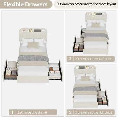 - Effortless Organization: This twin xl bed includes 2 roomy drawers that can be positioned in any of the four locations underneath, offering flexible storage solutions tailored to your space. Ideal for neatly organizing clothes, toys, or extra bedding, it maximizes room efficiency in smaller bedrooms