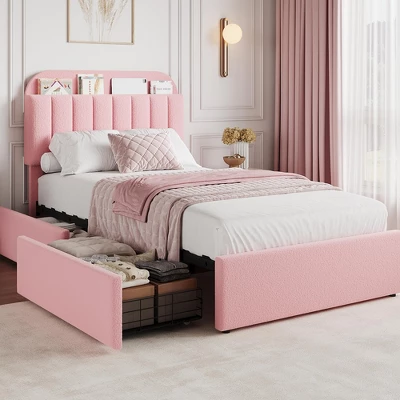 Upholstered in soft boucle fabric, the bed brings a luxurious and cozy feel to your room. The padded headboard provides comfortable support for reading or relaxing in bed.