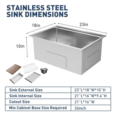 - – Undermount Kitchen Sink Construction: This deep single bowl sink, featuring undermount installation, accommodates large pots effortlessly, while its 10-inch depth is perfect for soaking and cleaning sizable bakeware