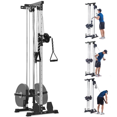 This professional wall-mounted cable station combines a lat pulldown tower, row machine, and adjustable crossover system in one space-efficient unit. Featuring 20-position pulley adjustments, it delivers commercial-grade strength training while requiring only 8 square feet of floor space.