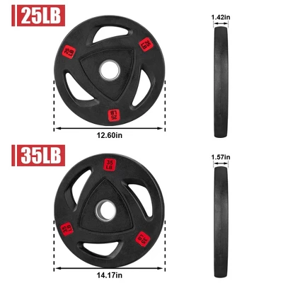 - UNIVERSAL 2-INCH HOLE – The weight plate has a 2-inch center hole, fits for all standard Olympic bars and racks. We have 25lbs/45 lbs weight plate set for your choice, different weight combination to meet your various exercise needs.