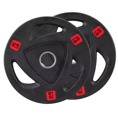 Technical SpecificationsCenter Hole: Standard 2-inch Olympic diameterPlate Options: Available in 25lb, 45lb pairs/singlesSurface Finish: Non-slip rubber coatingCore Material: Solid cast ironInsert Material: Corrosion-resistant stainless steel